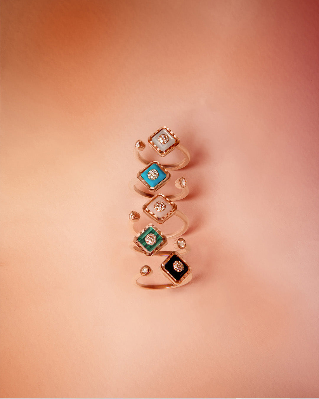 Je Play transforme l'art de porter la joaillerie en une aventure ludique et élégante, comme un clin d'œil à l'espièglerie qui caractérise le style Korloff. Hautes en couleurs, ces joyeuses créations sont une invitation à jouer, à explorer et à s'exprimer librement.